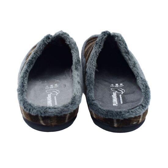Ανδρικές υφασμάτινες ανατομικές παντόφλες σε πτί καρώ της PlumaFlex - Καφε