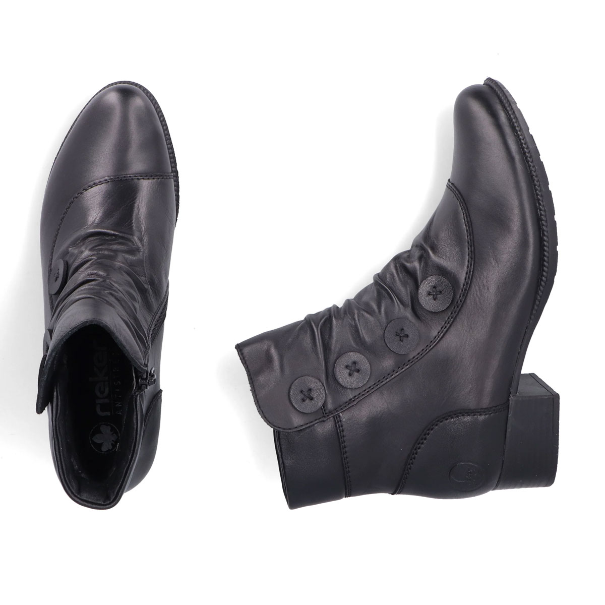 Γυναικεία μποτάκι RIEKER ANTISTRESS σε μαύρο καί καφέ χρώμα με φερμουάρ στο πλάι για τέλεια και εύκολη εφαρμογή κατασκευασμένα από υλικά εξαιρετικής ποιότητας.Τα μποτάκια της RIEKER διαθέτουν εξαιρετική εφαρμογή και είναι αναπαυτικά χάρη στο μαλακό πέλμα ANTISTRESS και την μαλακιά σόλα που απορροφά κραδασμούς από το σώμα.Διαθέτη τεχνολογίες antistress καί επένδυση με ύφασμα.Η τεχνολογία antistress μας βασίζεται σε τέσσερις ιδιότητες - ελαφρύτερο, ανακλαστικό, πιο ευρύχωρο και απορροφά τους κραδασμούς. Όλες οι ιδιότητές μας συνδυάζονται για ένα μακροχρόνιο αποτέλεσμα: περπατήστε πιο εύκολα, ζήστε πιο εύκολα.