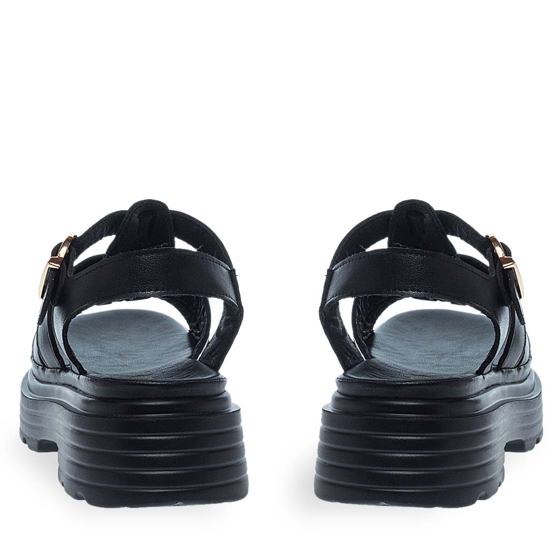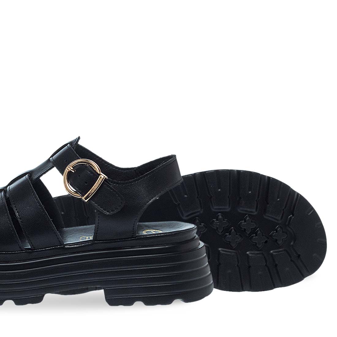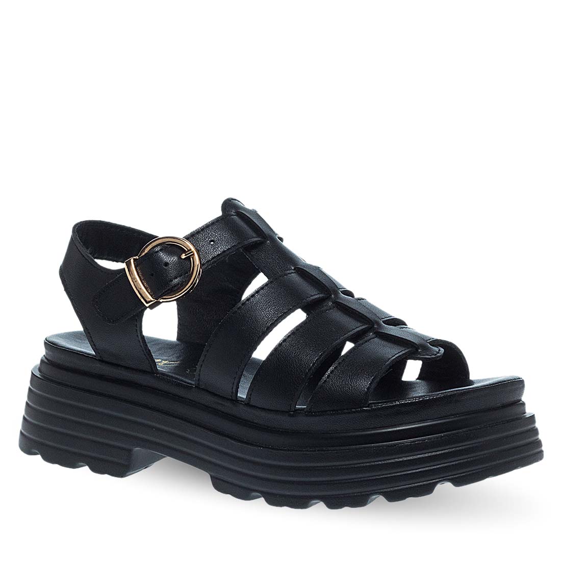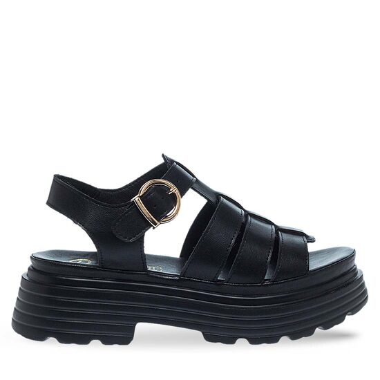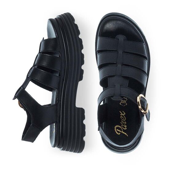 Γυναικεία Comfort flatform με δερμάτινο πατάκι με λουράκια της PAREX - Μαύρο