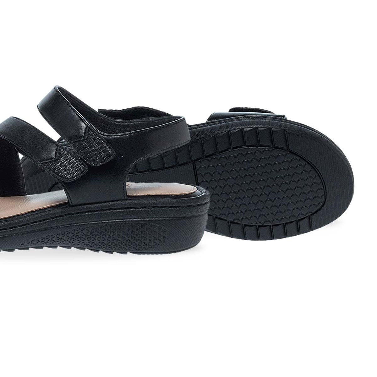 Γυναικεία Ανατομικά σανδάλια με βέλκρο της PAREX από Δέρμα,Εσωτερικά - Μαύρο