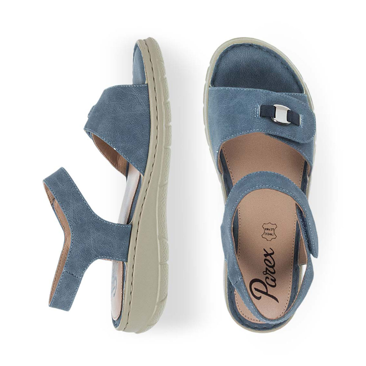 Γυναικεία σανδάλια ανατομικά της PAREX με άριστης ποιότητας δερμάτινο πάτο και δερμάτινη φόδρα .Έχει λουράκι με βέλκρο στό εμπρός μέρος για να ρυθμίζει τέλεια με το πόδι,ιδιαίτερο υλικό καί λουράκι στόν αστράγαλο ένα πολύ κομψό διακοσμητικό. Με μαλακό και ανατομικό πέλμα, εύκαμπτα, ραμμένα στο χέρι. Μια ιδανική επιλογή για να σας προσφέρει ξεκούραστα βήματα σε κάθε έξοδο! Διαθέσιμα σε μπέζ και τζίν ντένιμ χρώμα
