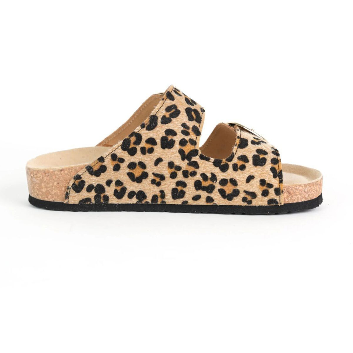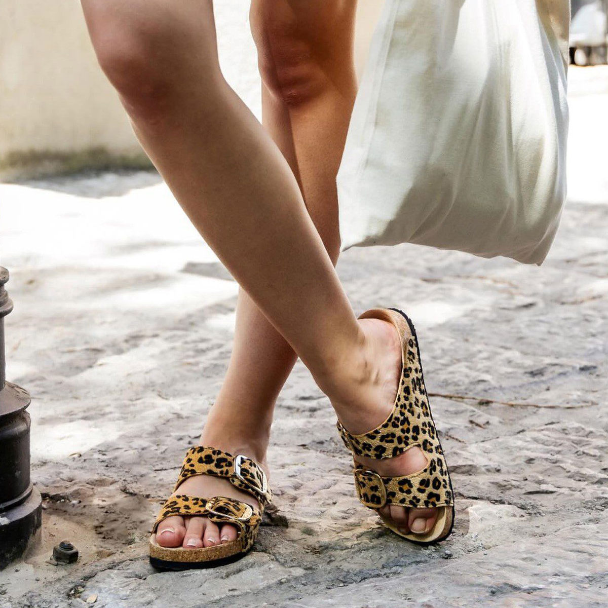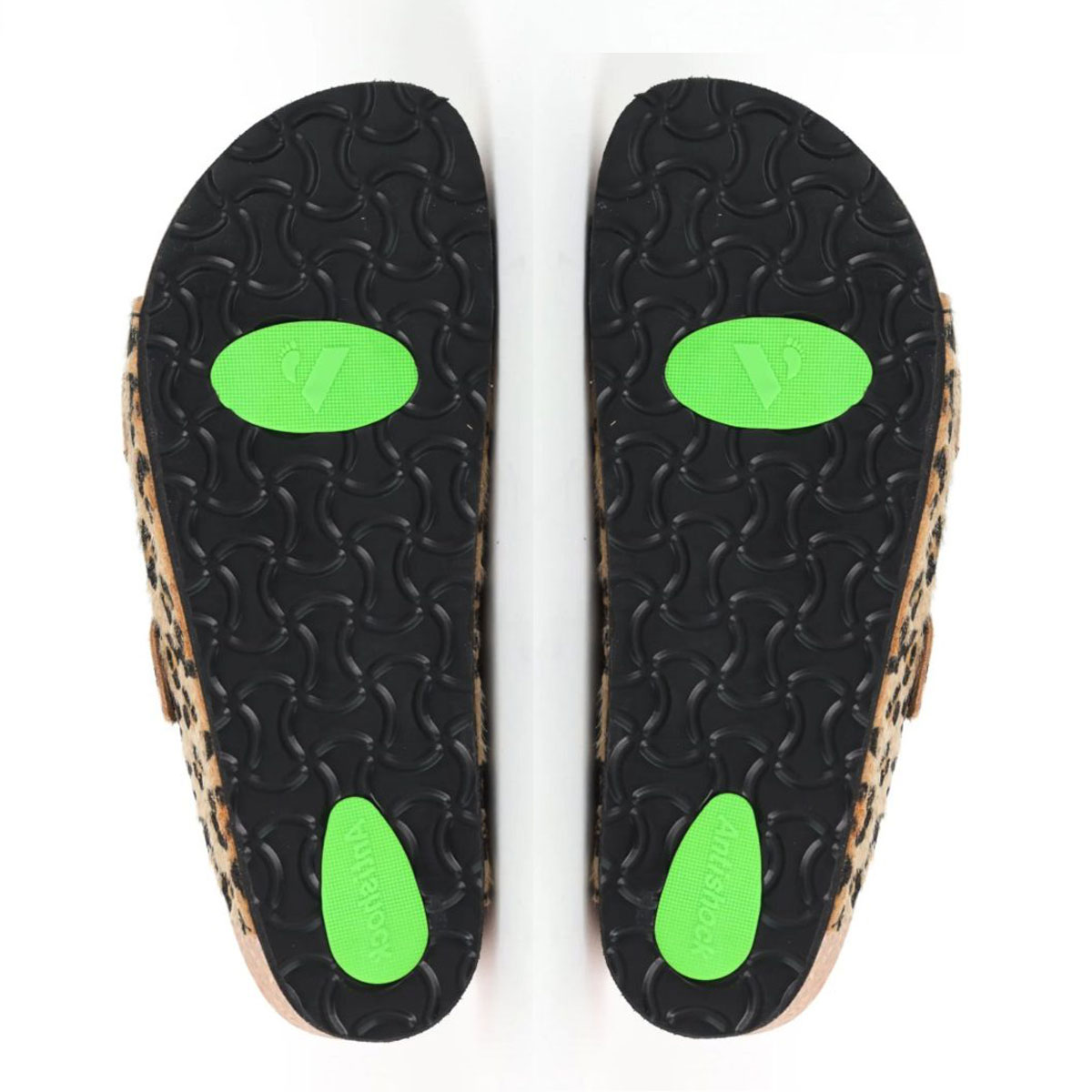 Γυναικεία ανατομικά δερμάτινα σανδάλια Vesna  σε λεοπάρ χρώμα.
