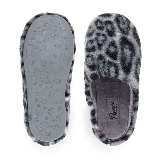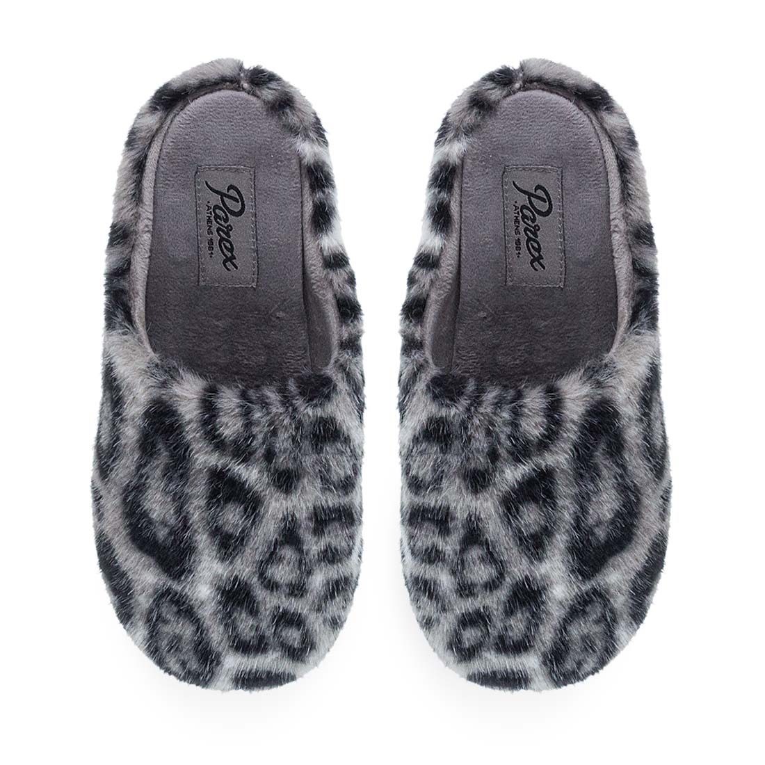 Γυναικείες λούτρινες animal print Comfort παντόφλες χειμερινές της PAREX - Γκρι
