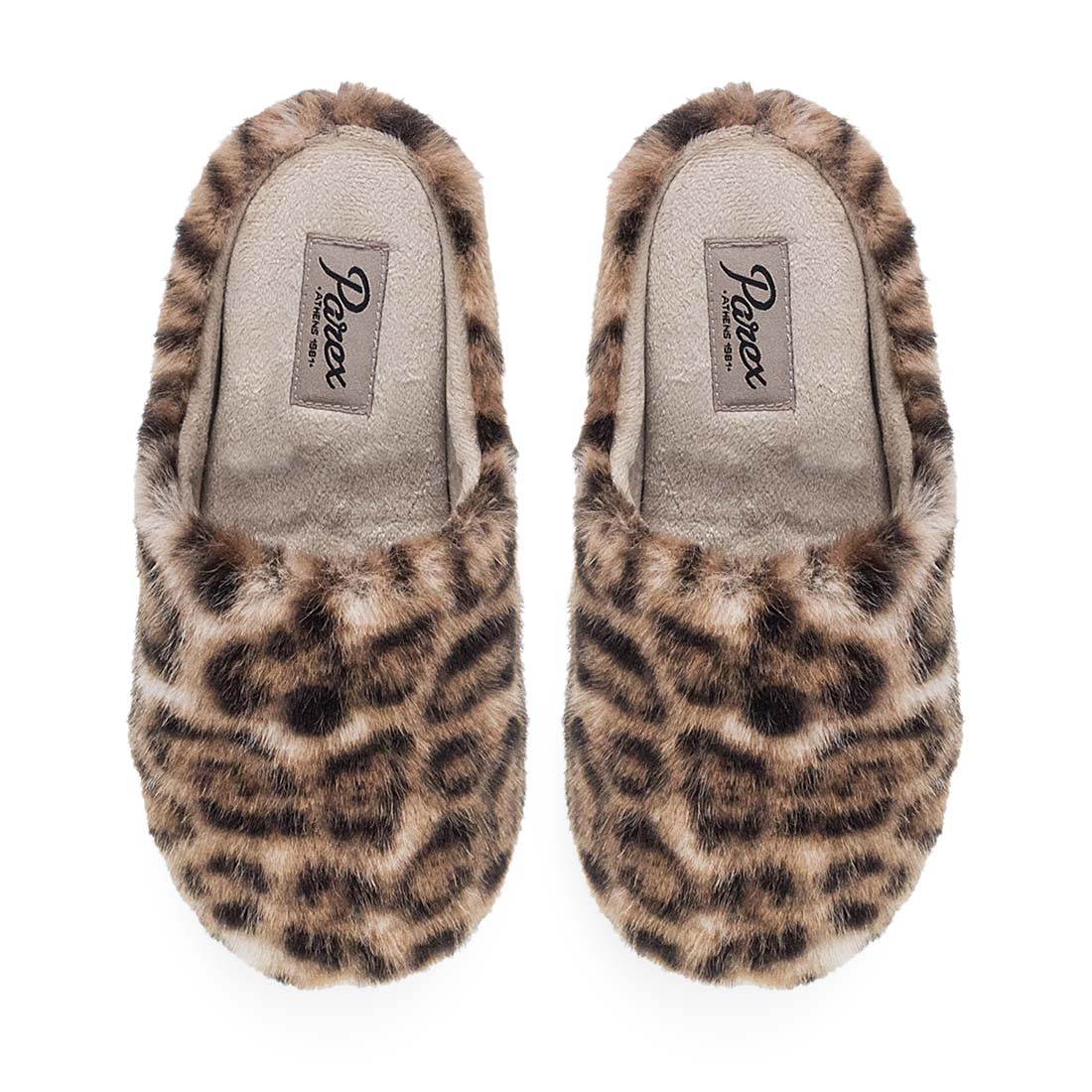 Γυναικείες λούτρινες animal print Comfort παντόφλες χειμερινές της PAREX - Καφε