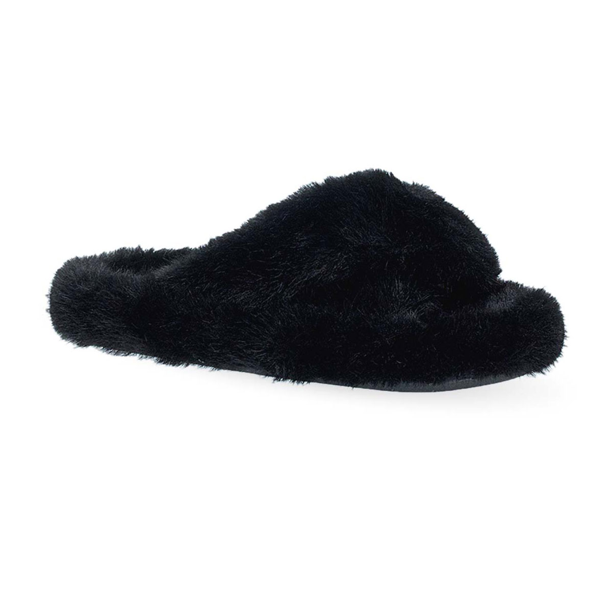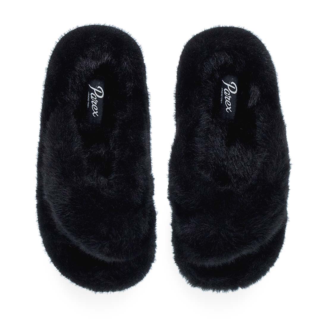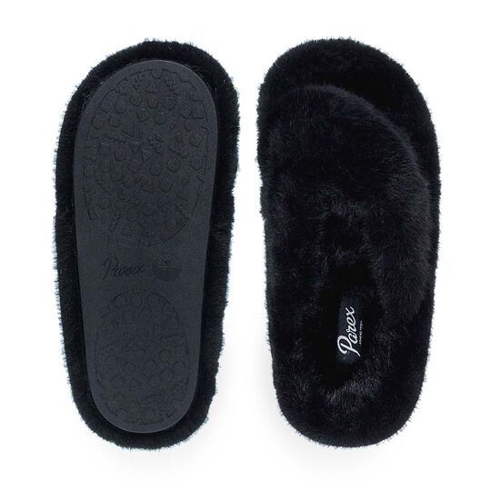 Γυναικείες παντόφλες cοmfort χιαστί ανοιχτές εμπρός με γούνα παντόφλες χειμερινές της PAREX - Μάυρο