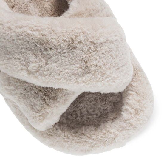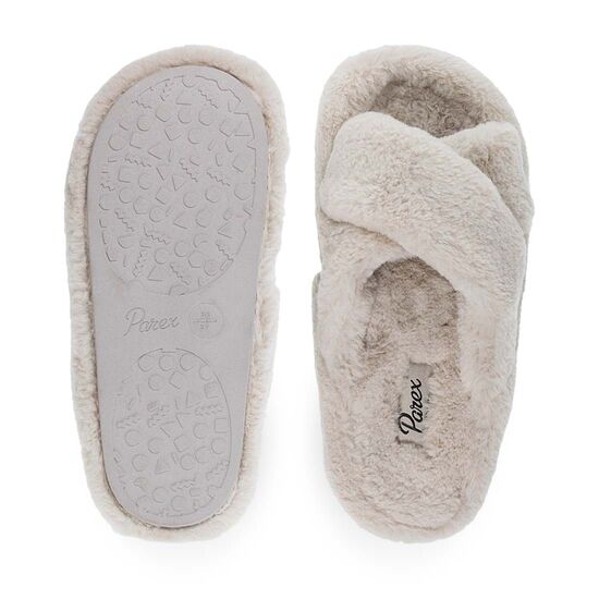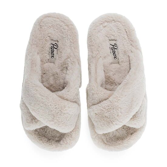Γυναικείες παντόφλες cοmfort χιαστί ανοιχτές εμπρός με γούνα παντόφλες χειμερινές της PAREX - Beige
