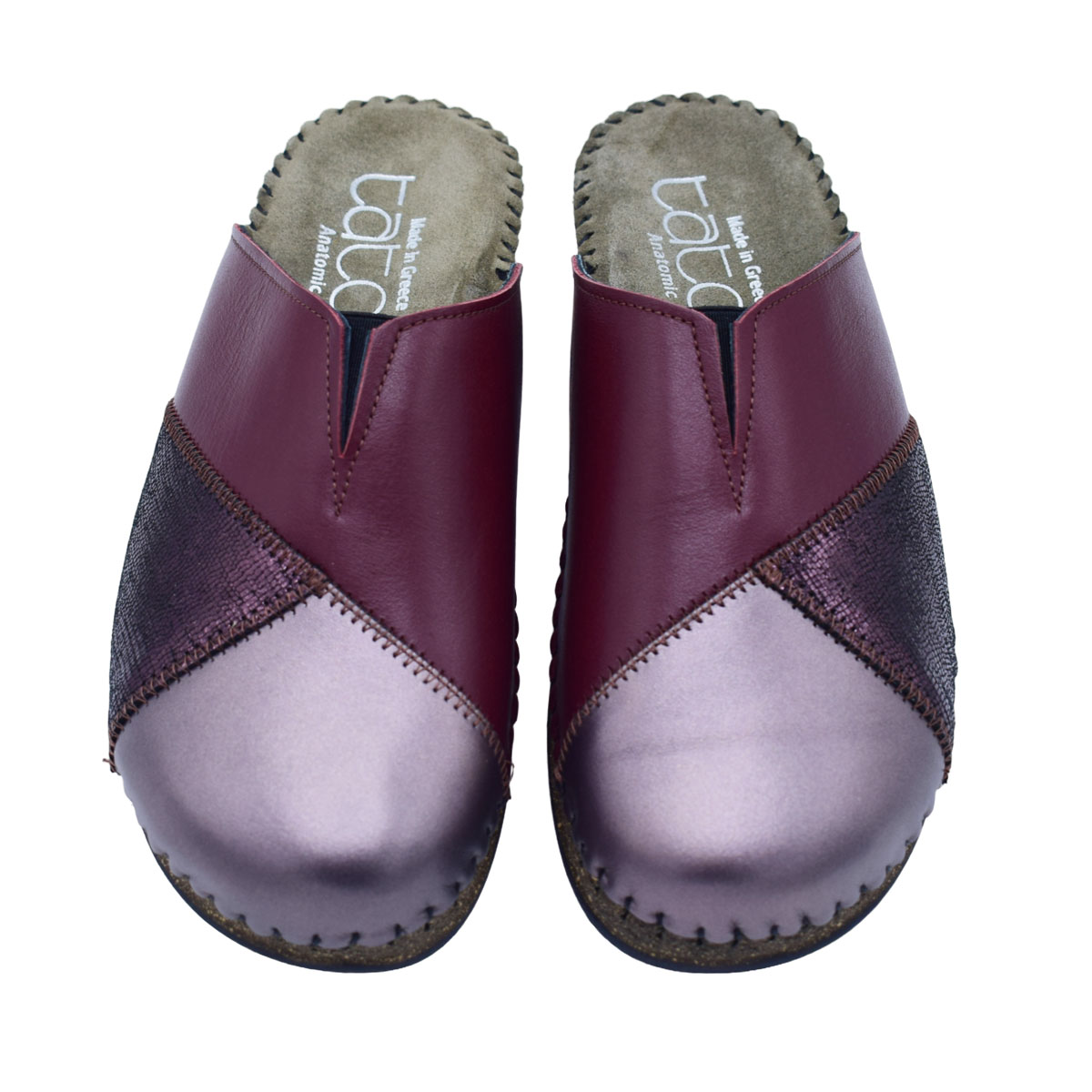 Χειμερινή ανατομική γυναικεία δερμάτινη παντόφλα σε patchwork της Tatoo. Με άριστης ποιότητας δερμάτινο πολύ αφράτο πάτο και δερμάτινη φόδρα σε μπορντώ και gold multi χρώμα. Με μαλακό και ανατομικό πέλμα, εύκαμπτα, ραμμένα στο χέρι. Για άνετες εμφανίσεις που δεν κουράζουν καθόλου το πόδι.