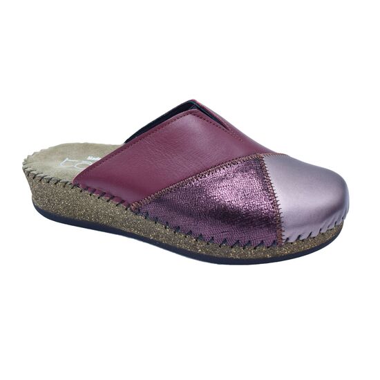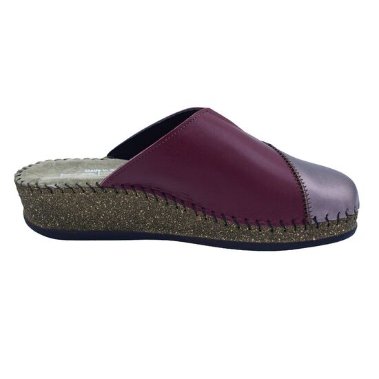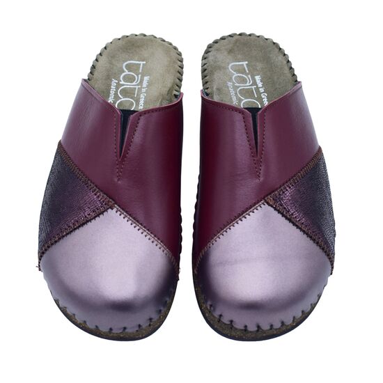 Χειμερινή ανατομική γυναικεία δερμάτινη παντόφλα σε patchwork της Tatoo - Bordeaux