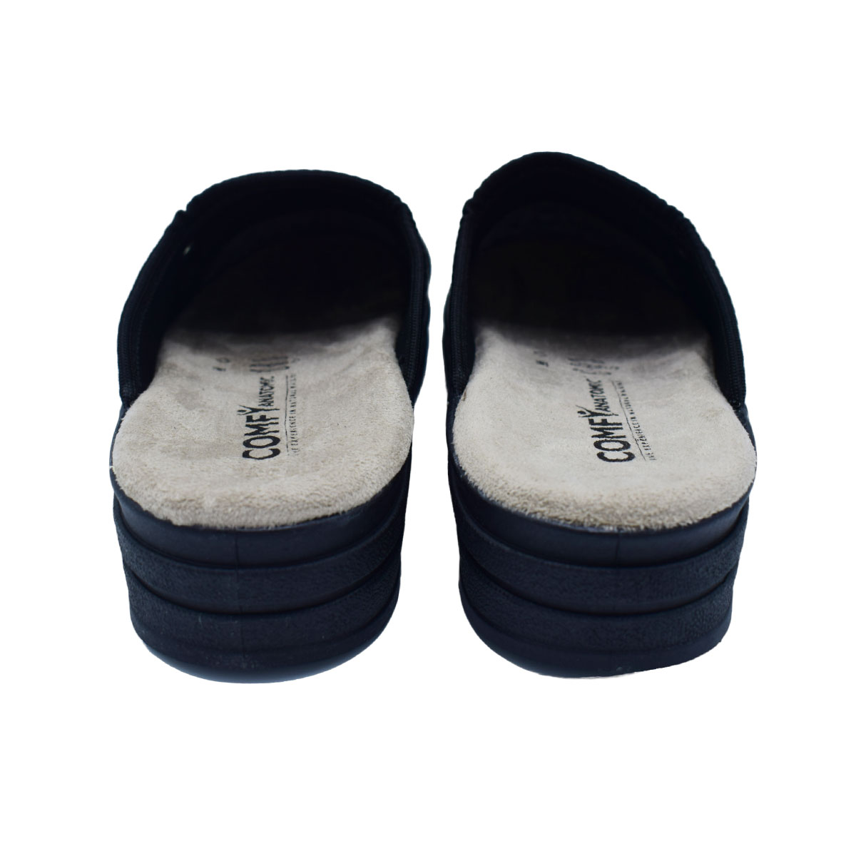 Γυναικείες ανατομικές Ισπανικές παντόφλες σπιτιού σε στύλ σαμπό με memory foam της της COMFY . Με ελαστικό το επάνω μέρος για να εφαρμόζει σε κάθε πόδι ανατομικό πολύ μαλακό δερμάτινο πάτο ειδικό με πολλές ανατομίες κάτω απο το πατάκι μαλακιά σόλα για άνετο περπάτημα. Σε μαύρο χρώμα.