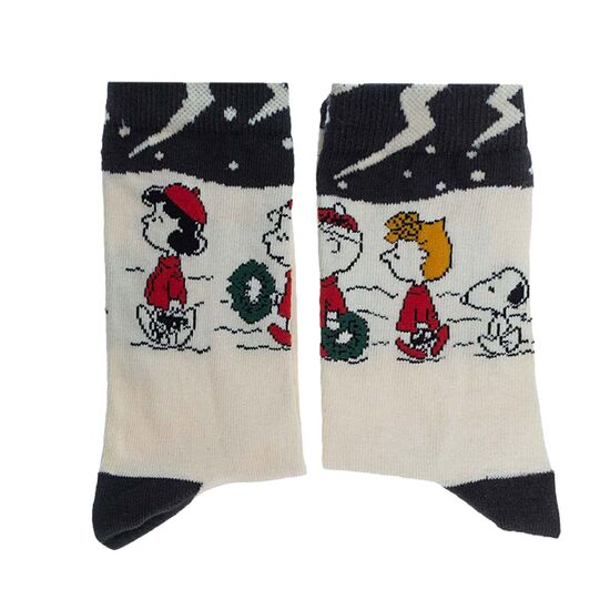 Γυναικείες κάλτσες Peanuts. Λευκές-εκρού κάλτσες Peanuts με χριστουγεννιάτικο σχέδιο Snoopy και χιονονιφάδες. Ιδανικές για τις γιορτές.