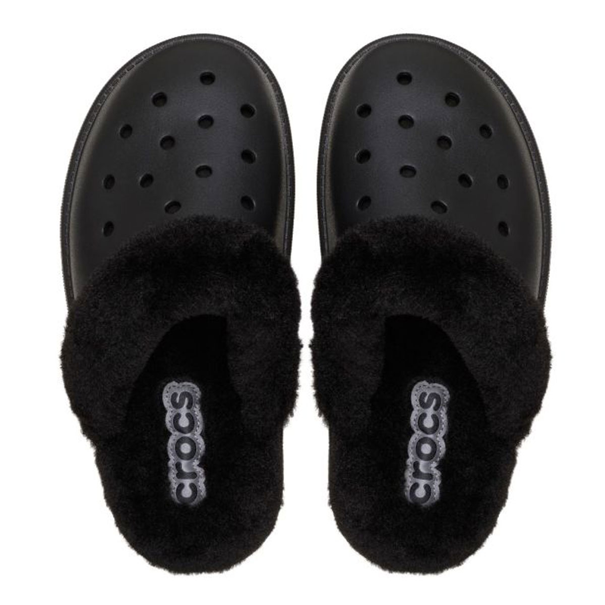 Unisex ανατομική παντόφλα Crocs Classic Fuzz Scuff σε μαύρο