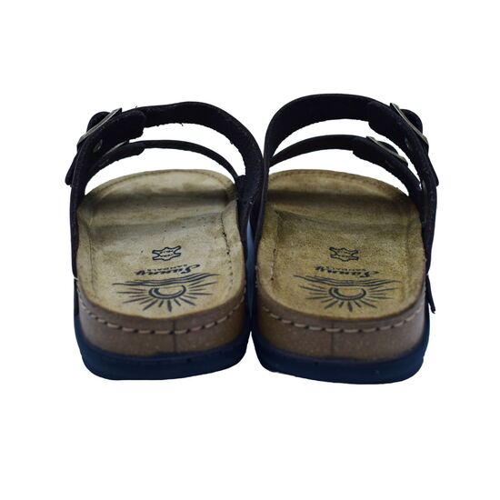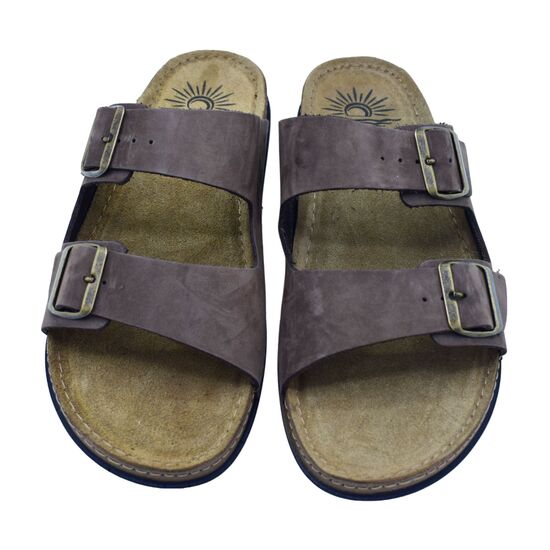 Ανατομικό ανδρικό δερμάτινο σανδάλι της εταιρίας Sunny Sandals, με 2 λουράκια δερμάτινα και αγκράφα που ρυθμίζουν στο κουντιεπιέ για καλύτερη εφαρμογή στο πόδι. Δερμάτινος πάτος πολύ μαλακός με memory gel και εύκαμπτος. Ανθεκτικό στην καταπόνηση. Διαθέσιμες σε καφέ χρώμα