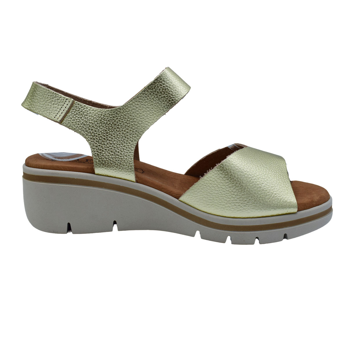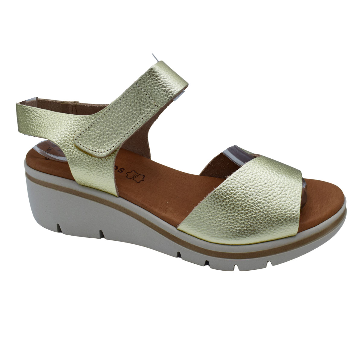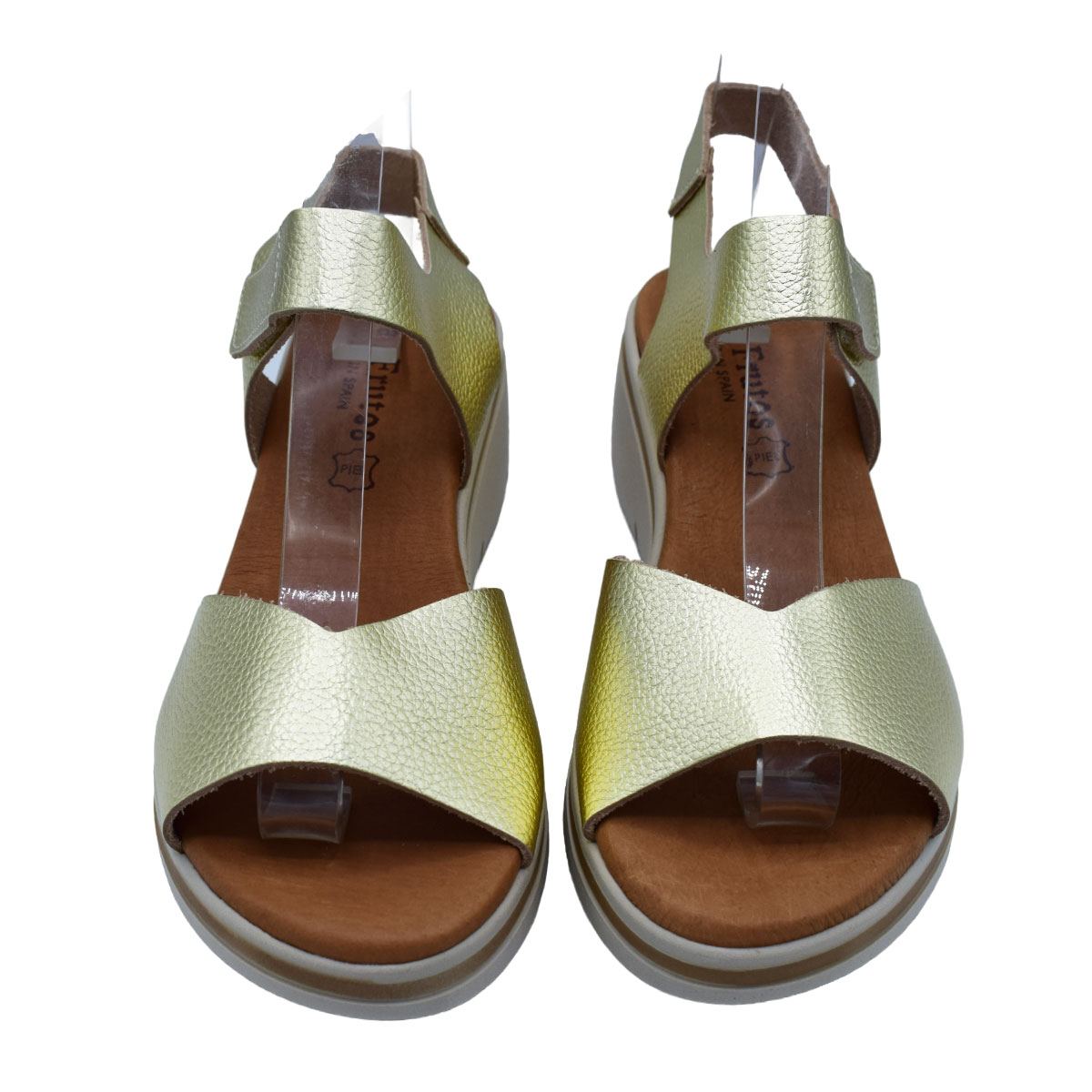 Γυναικεία πλατφόρμα Comfort δερμάτινη της Ισπανικής εταιρείας Eva Frutos.Μοναδικά άνετη φόρμα αγκαλιάζει σταθερά το πόδι με φάσα εμπρός καί λουράκι πού ριθμίζει με βέλκρο στόν αστράγαλο, ένα πολύ ιδιαίτερο ξεχωριστό σχέδιο . Ιδανικό για διακοπές και περπάτημα . Η αντιολισθητική σόλα προσφέρει σταθερότητα στη βάδιση αλλά είναι αρκετά μαλακή για αποφόρτιση των επώδυνων πιέσεων σε όλο το σώμα.Διαθέσιμα σε χρυσό χρωμα
