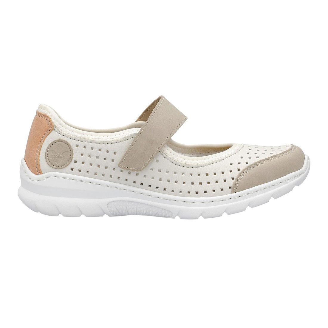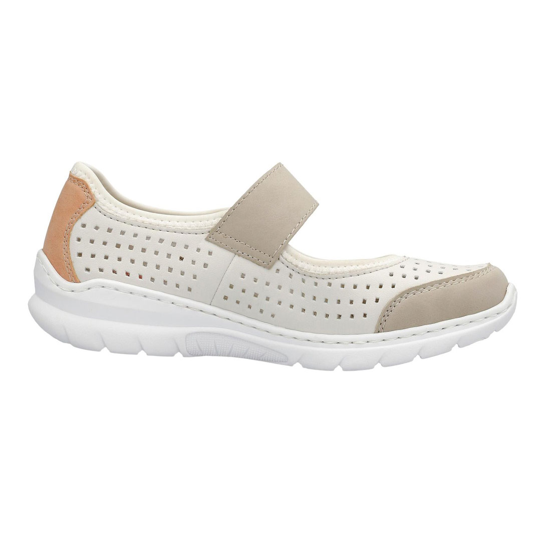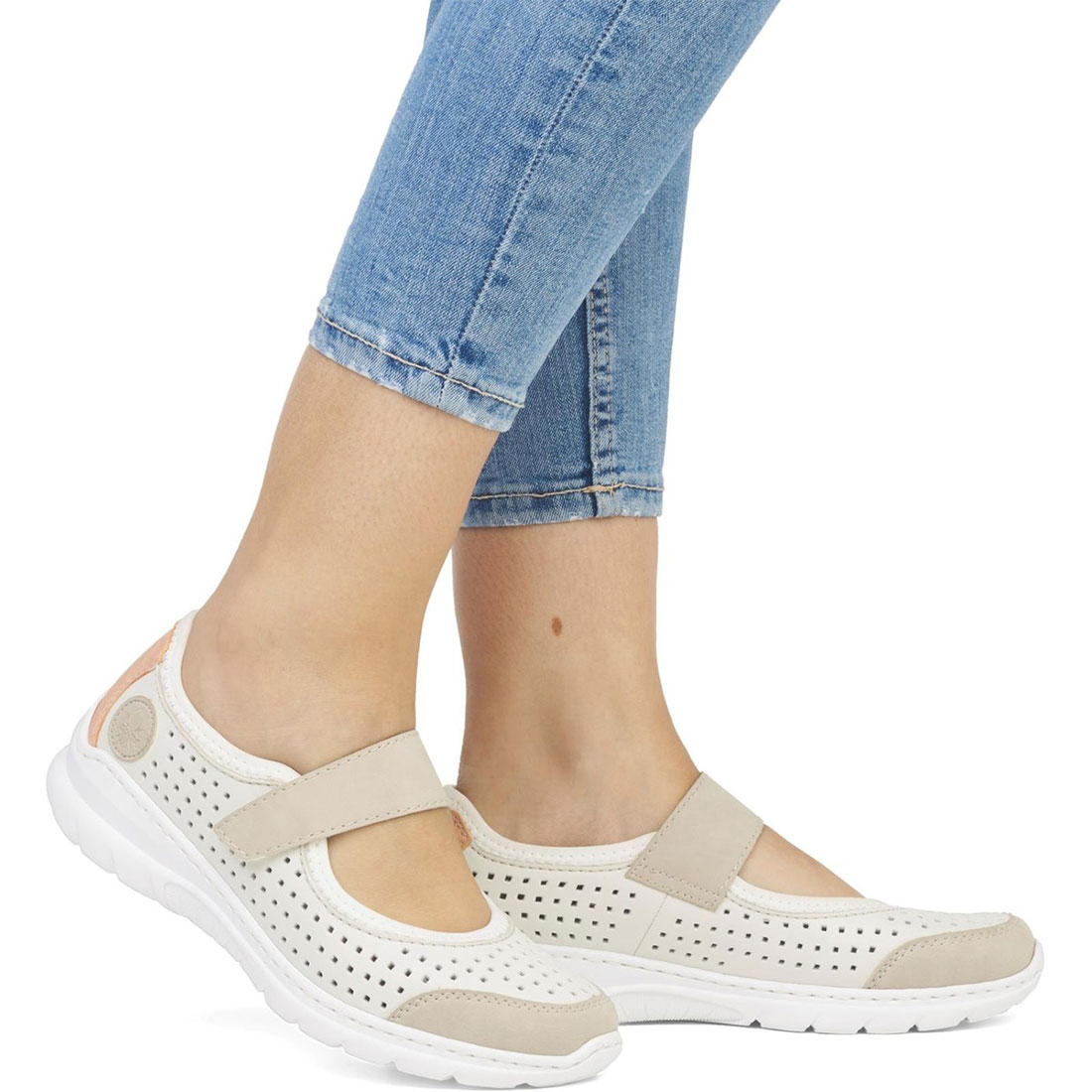 Γυναικείο τρυπητό slip on Rieker με μαλακή, εύκαμπτη σόλα .Διαθέτει velcro στο κουντεπιέ για να μπαίνει και να εφαρμόζει