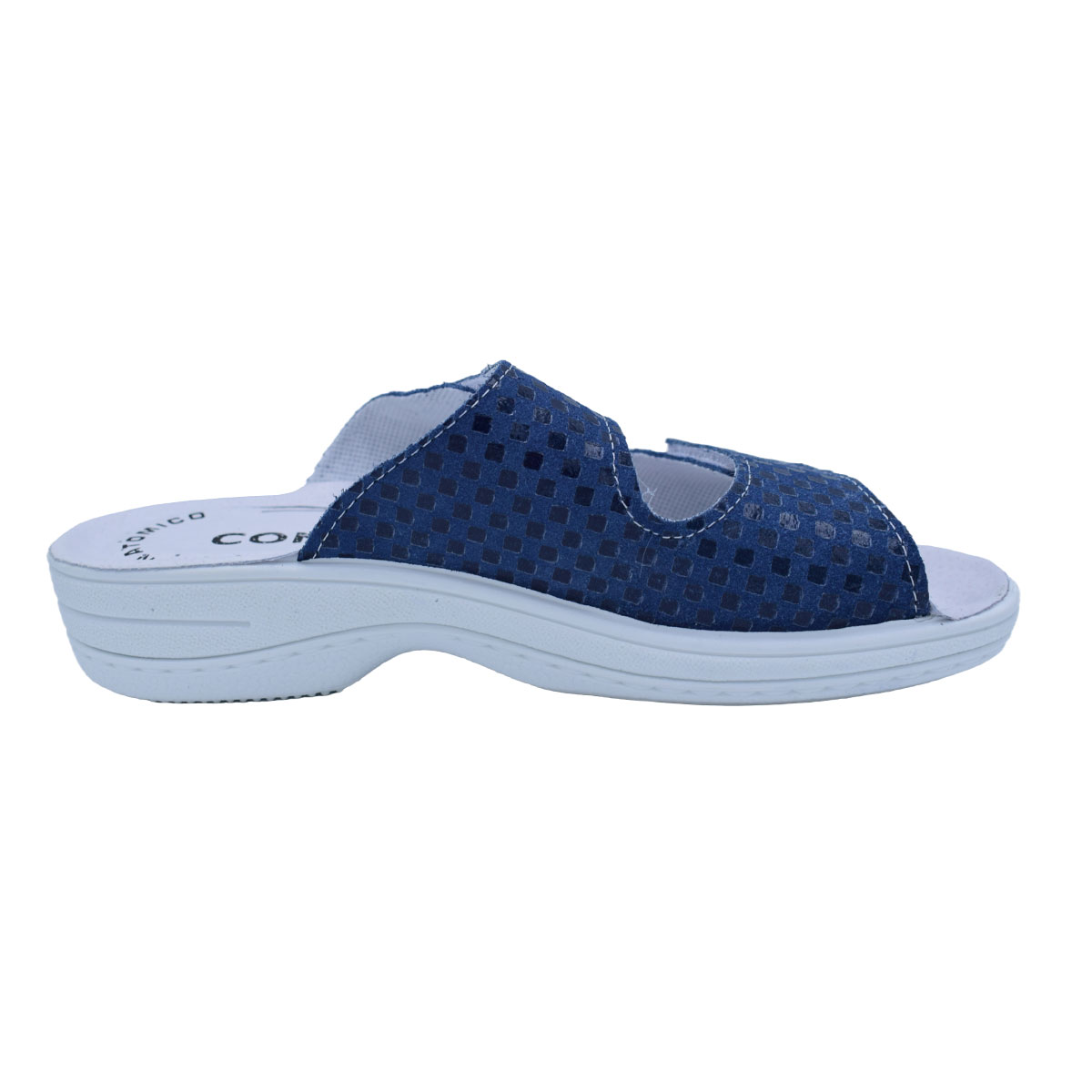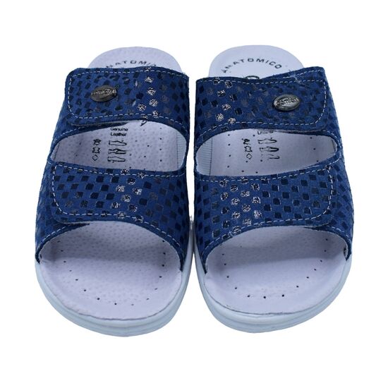 Γυναικείες ανατομικές δερμάτινες παντόφλες Ιταλικής κατασκευής της COMFY .Κλασικό σχέδιο με 2 λουριά δερμάτινα αυτοκόλλητα για τέλεια εφαρμογή .Μέγιστη άνεση και ελαστικότητα . Ανατομική με πολύ μαλακό δερμάτινο πάτο τύπου memory foam και μαλακιά σόλα για άνετο περπάτημα. Σε μπλέ τζίν χρώμα.