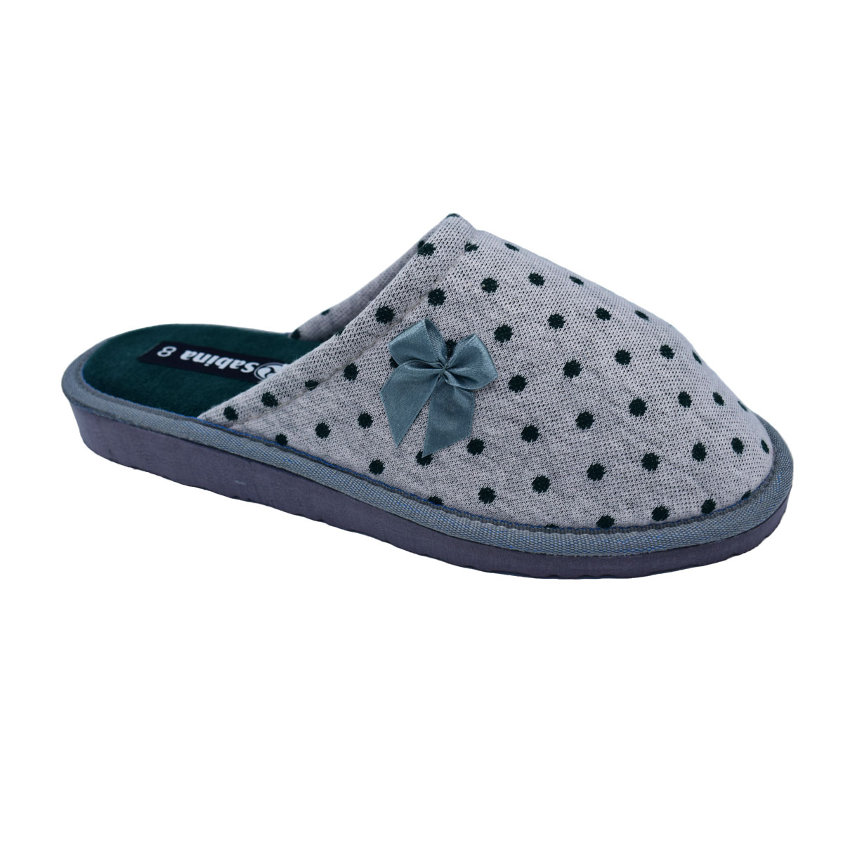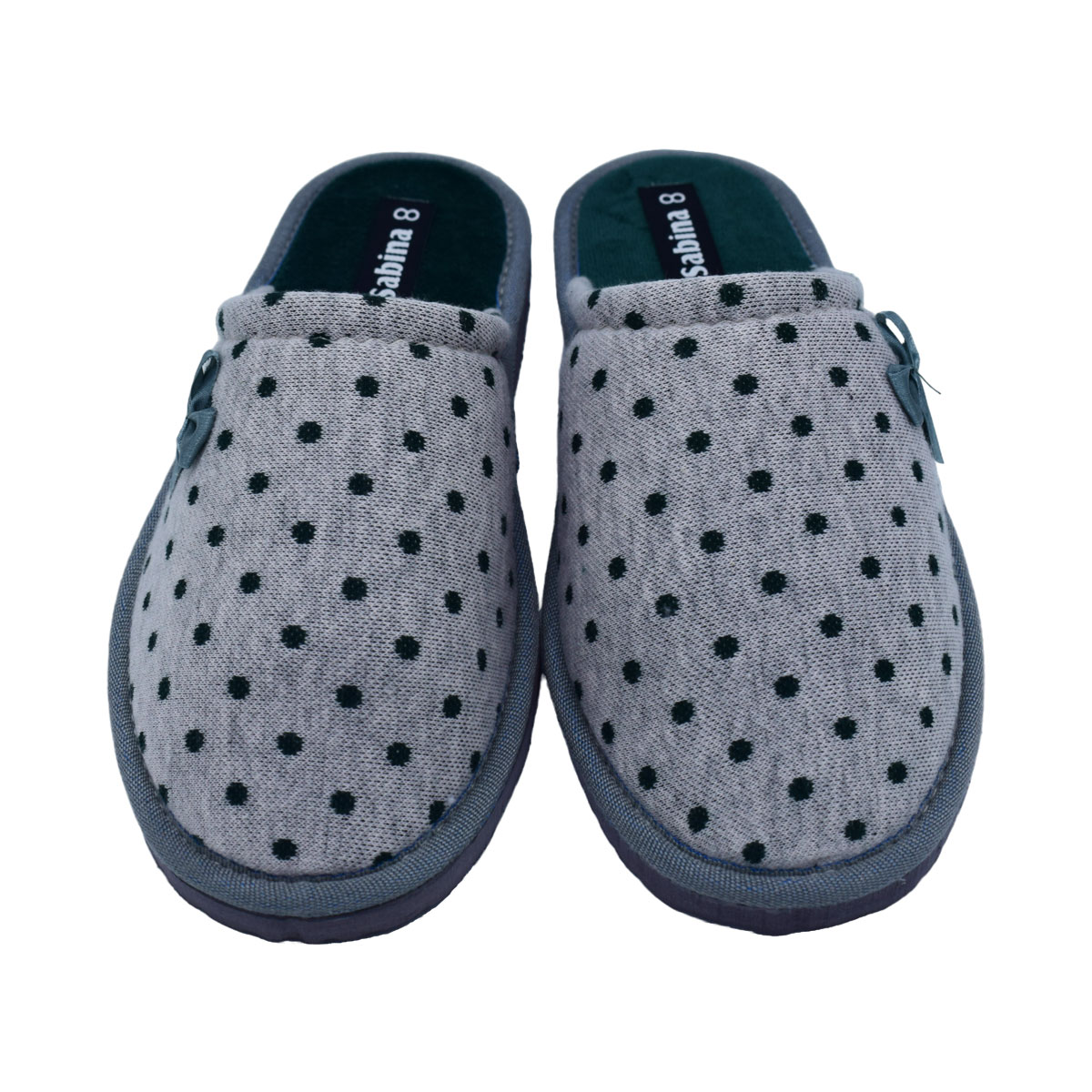 Γυναικείες comfort υφασμάτινες παντόφλες πουά της SABINA από ύφασμα βαμβακερό - Γκρι