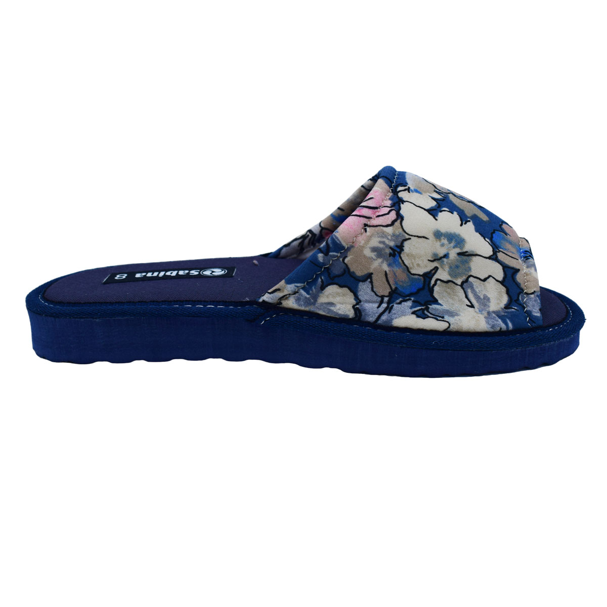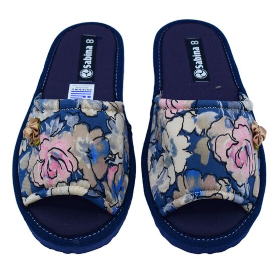 Γυναικείες υφασμάτινες Comfort παντόφλες ανοιχτές μπροστά της Sabina εξαιρετικής ποιότητας .Διαθέτουν πολύ μαλακό πάτημα και αντιολισθητική σόλα. Ελληνικής κατασκευής.Πολύ μοντέρνο σχέδιο και διαχρονικό με λουλουδάκια και βαμβακερο υλικό .Διαθέσιμες σε μπλέ μερόζ χρώμα.Μπορεί να πλυθεί στο πλυντήριο στους 30 βαθμούς!