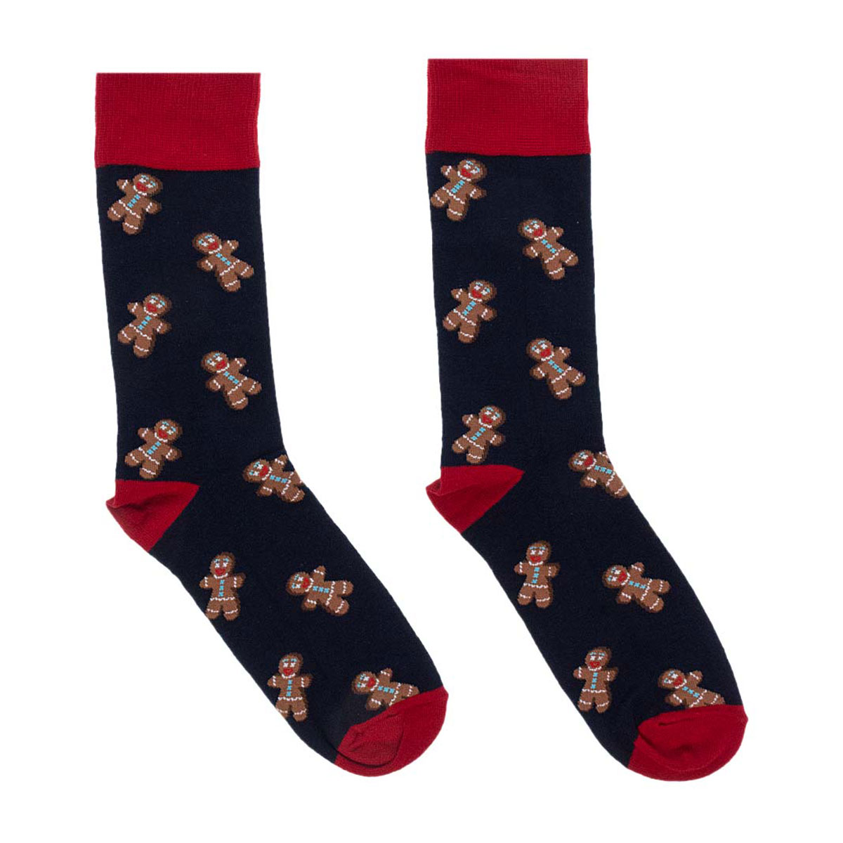 Ανδρικές καί γυναικείες κάλτσες Parex. Γιορτινές κάλτσες Parex με σχέδιο gingerbread, σε μπλε σκούρο χρώμα με κόκκινες λεπτομέρειες. Μαλακές και ζεστές.