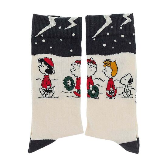 Ανδρικές κάλτσες Peanuts. Λευκές-εκρού κάλτσες Peanuts με χριστουγεννιάτικο σχέδιο Snoopy και χιονονιφάδες. Ιδανικές για τις γιορτές.
