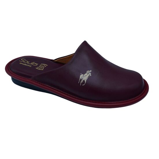 Ανδρικές παντόφλες ανατομικές, δερμάτινες της SOULIS ANATOMIC από Δέρμα σε Μπορντό