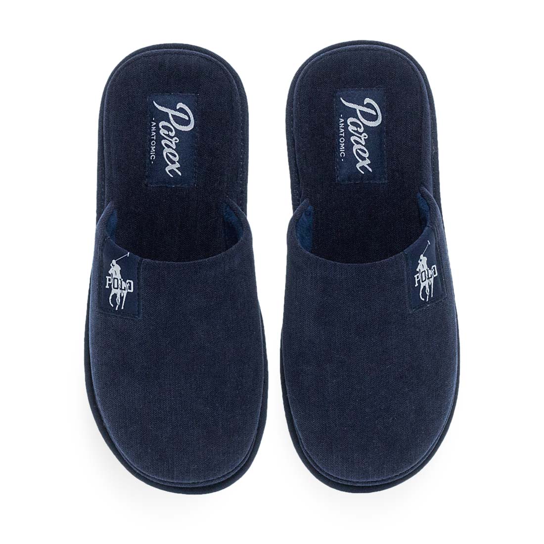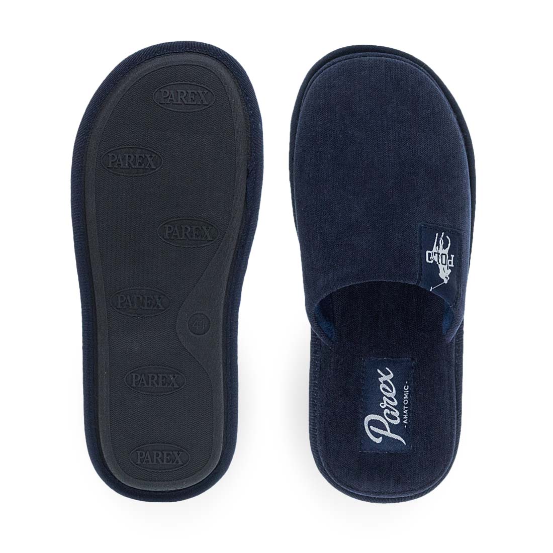 Ανδρικές υφασμάτινες βελουτέ παντόφλες polo ανατομικές χειμερινές της PAREX - Μπλέ