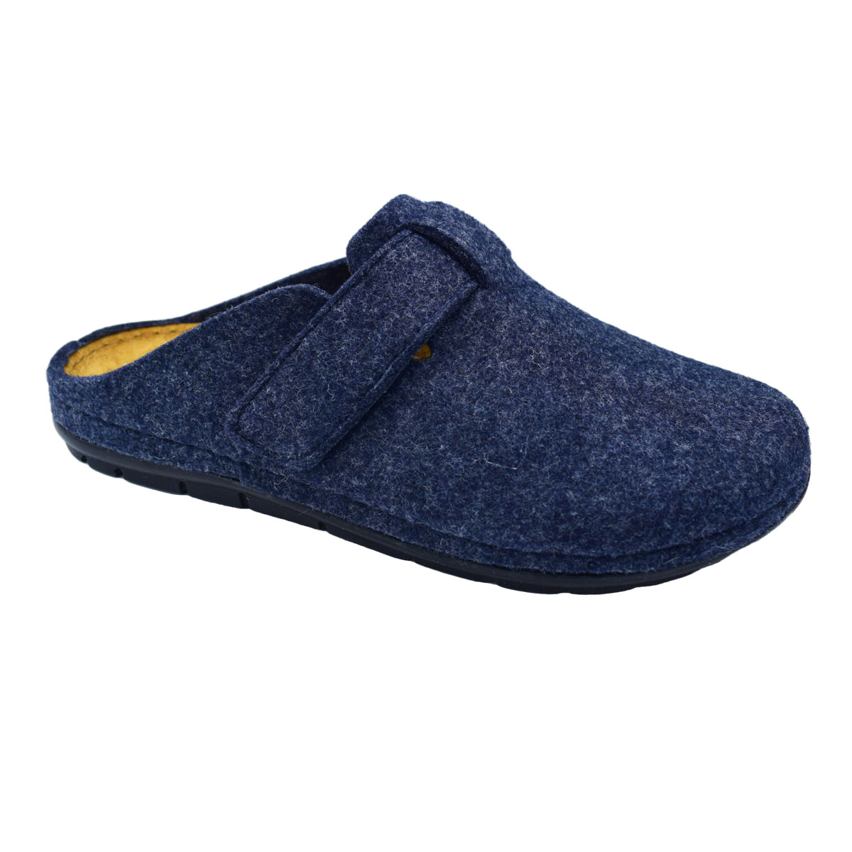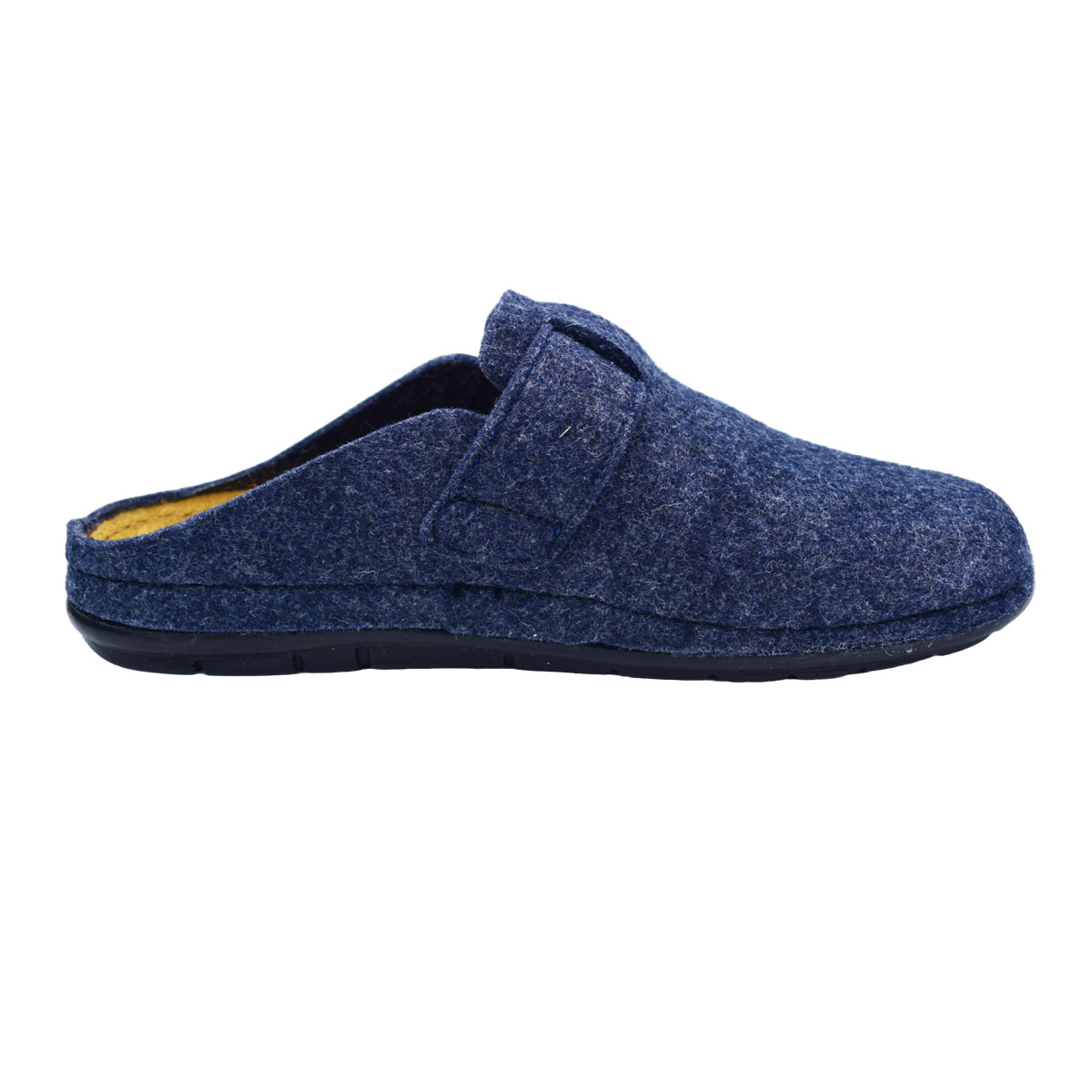 Ανδρικές ανατομικές παντόφλες της SUNNY ANATOMIC κατασκευασμένες από τσόχα εξαιρετικής ποιότητας . Διαθέτει ευλύγιστη σόλα με λίγο τακούνι πολύ μαλακό δερμάτινο πάτο με ειδικό ανατομικό μαξιλαράκι με memory gel,και αντιολισθητική σόλα.Πρωτότυπο και πολύ μοντέρνο σχέδιο σε στύλ σαμπό και βέλκρο στό πλάι .Διαθέσιμη σε μπλέ χρώμα