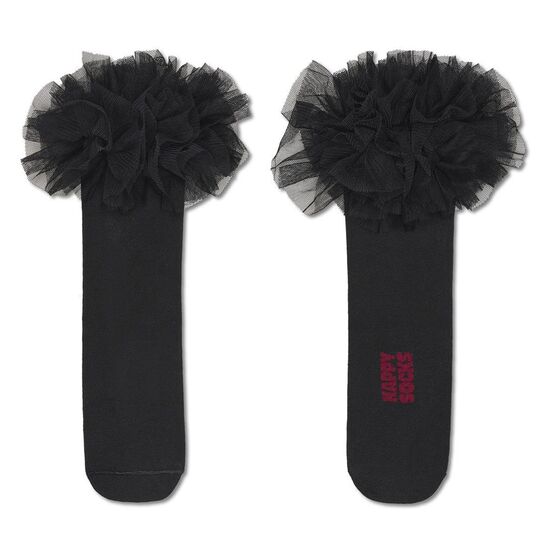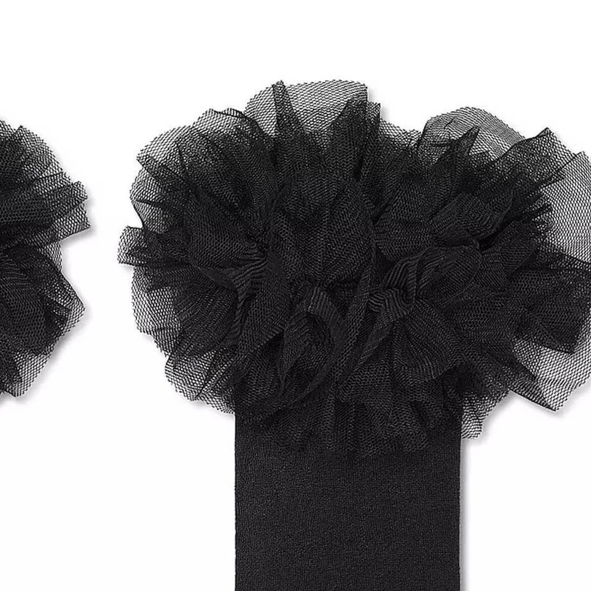 Αυτή η κομψή, μαύρη κάλτσα διαθέτει ένα λεπτό, τούλινο, φουντωτό τελείωμα στο ρεβέρ, προσθέτοντας μια ρομαντική πινελιά σε κάθε εμφάνιση. Σας ενδιαφέρει η αυθεντική αυτοέκφραση και αυτές οι φανταχτερές κάλτσες είναι ιδανικές για όσες τολμούν να είναι διαφορετικές. Η διακριτική λεπτομέρεια με την κορδέλα δημιουργεί μια όμορφη αντίθεση με το κομψό, μαύρο φόντο καθιστώντας αυτές τις κάλτσες μια εκλεπτυσμένη επιλογή για κάθε περίσταση.