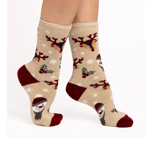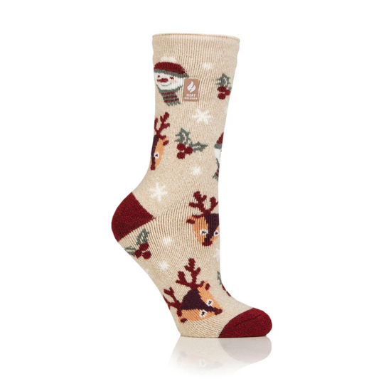 HEAT HOLDERS LADIES LITE 80241 LITE CHRISTMAS SOCKS SNOWY