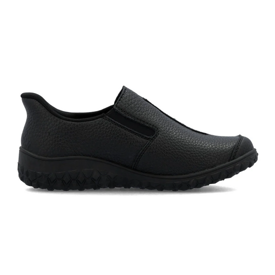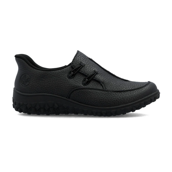 Rieker γυναικεία δερμάτινα slip on παπούτσια,σχεδιασμένα από δέρμα υψηλής ποιότητας και άνετο αποσπώμενο πάτο extra wide,διαθέτουν μία προτοποριακή τεχνολογία ready 2 go που δέν χρειάζεται κάν να σκύψεις για να το φορέσεις αλλά μπαίνει χωρίς καμία βοήθεια.Είναι από τα λίγα δερμάτινα παπούτσια που έχουν ειδική επένδυση με υλικά που δεν αφήνουν το πόδι να κρυώσει.Διαθέτουν λάστιχο στο πάνω μέρος και σταμπωτό δέρμα. Άνετα για καθημερινές chic εμφανίσεις.Διαθέσιμο σε μαύρο χρώμα