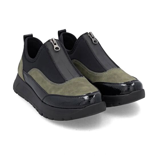 Γυναικεία Ανατομικά Comfort  sneakers  της RIEKER  σέ Μαύρο με λαδί χρώμα