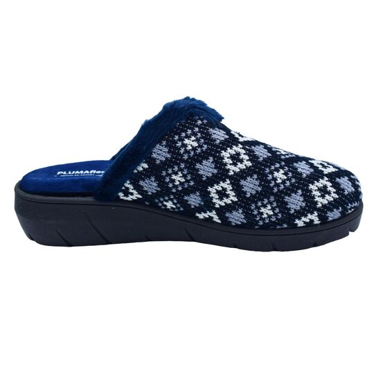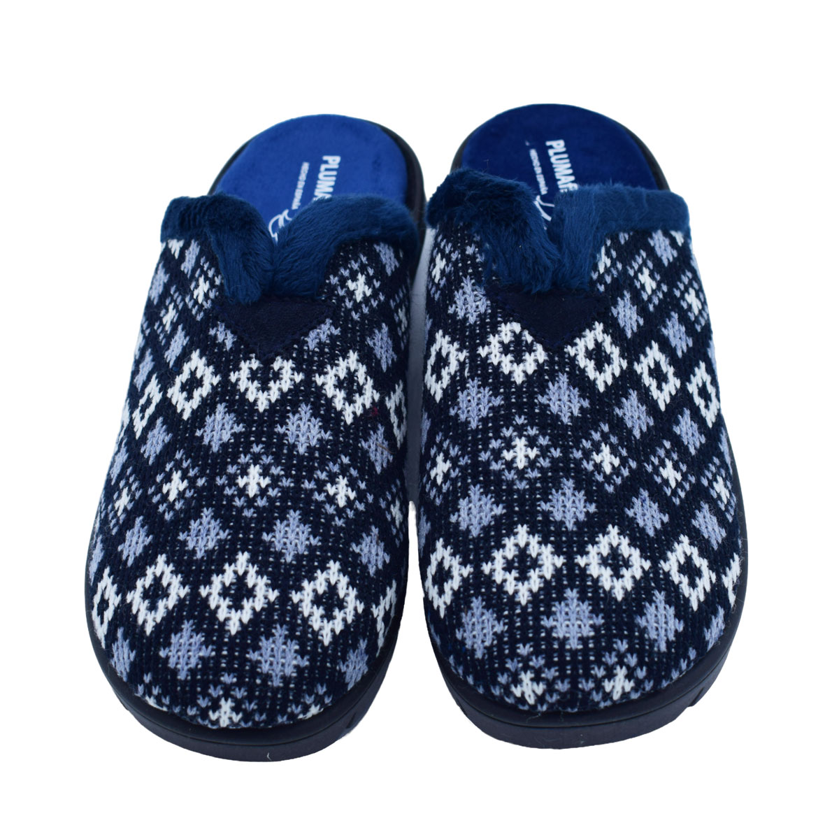 Γυναικείες πλεχτές παντόφλες ανατομικές σαμπό χειμερινές της Plumaflex - Μπλέ