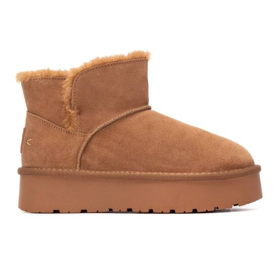 Γυναικεία δερμάτινα μποτάκια αυστραλιανού στιλ με γούνα της Carmela σε Κάμελ