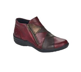 Ανατομικά Comfort δερμάτινα γυναικεία angle boots της RIEKER - Μπορντό combi